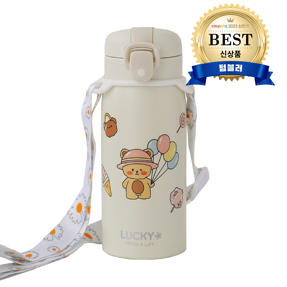 프레쉬어랏 럭키 원터치 보온보냉 스텐 미니텀블러 350ml + 스티커 + 스트랩 세트, 크림 구경하러가기