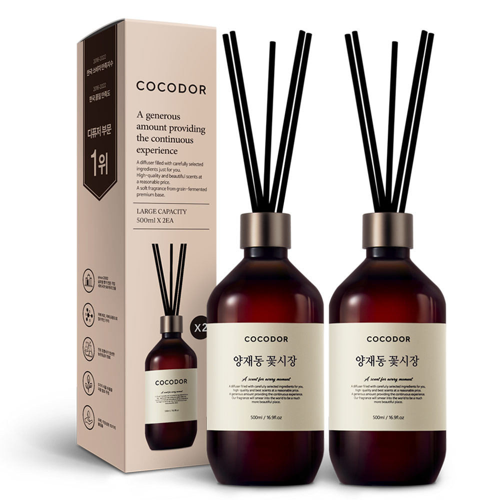 코코도르 프리미엄 디퓨저 500ml x 2p + 섬유스틱 14P 선물세트, 양재동 꽃시장, 2개 구경하러가기