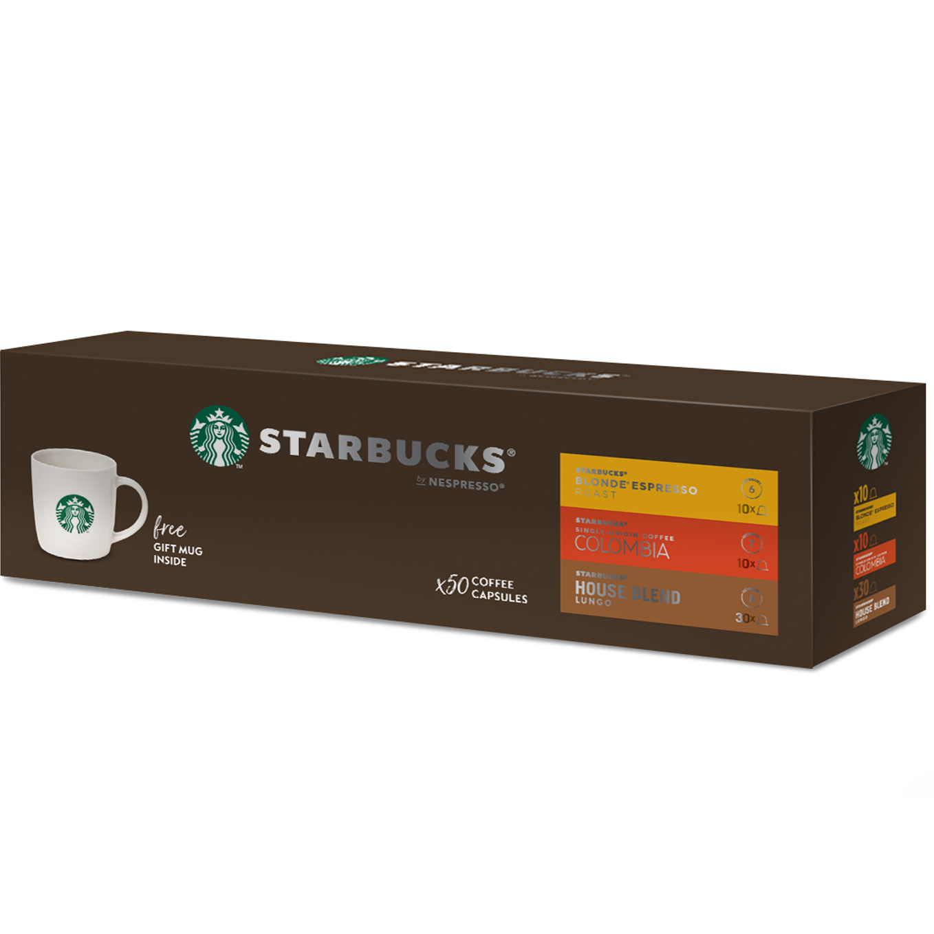 스타벅스 네스프레소 캡슐 커피세트, 블론드 에스프레소 로스트 10p + 싱글 오리진 콜롬비아 10p + 하우스 블렌드 30p + 머그, 1세트